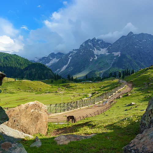Pahalgam is nestled in the Lidar Valley and has gained popularity for its scenic beauty. The place is an ideal spot for hiking, trekking, and fishing. It forms a base for the holy cave of Amarnath. The hill station is enriched with a green meadow, a snow-clad mountain, and rugged terrain. It also offers an ideal spot for picnics while experiencing pony riding, zorbing, etc.