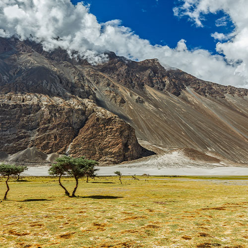 Nubra Valley is well known for its cold desert and stunning landscape. The Diskit Monastery and Hunder Villa, Maitreya Buddha's statue, which is 32m, serves the major tourist destination. You can enjoy camping and riding on a camel. The dunes, blue sky, and rugged landscape make this place a unique tourist destination.